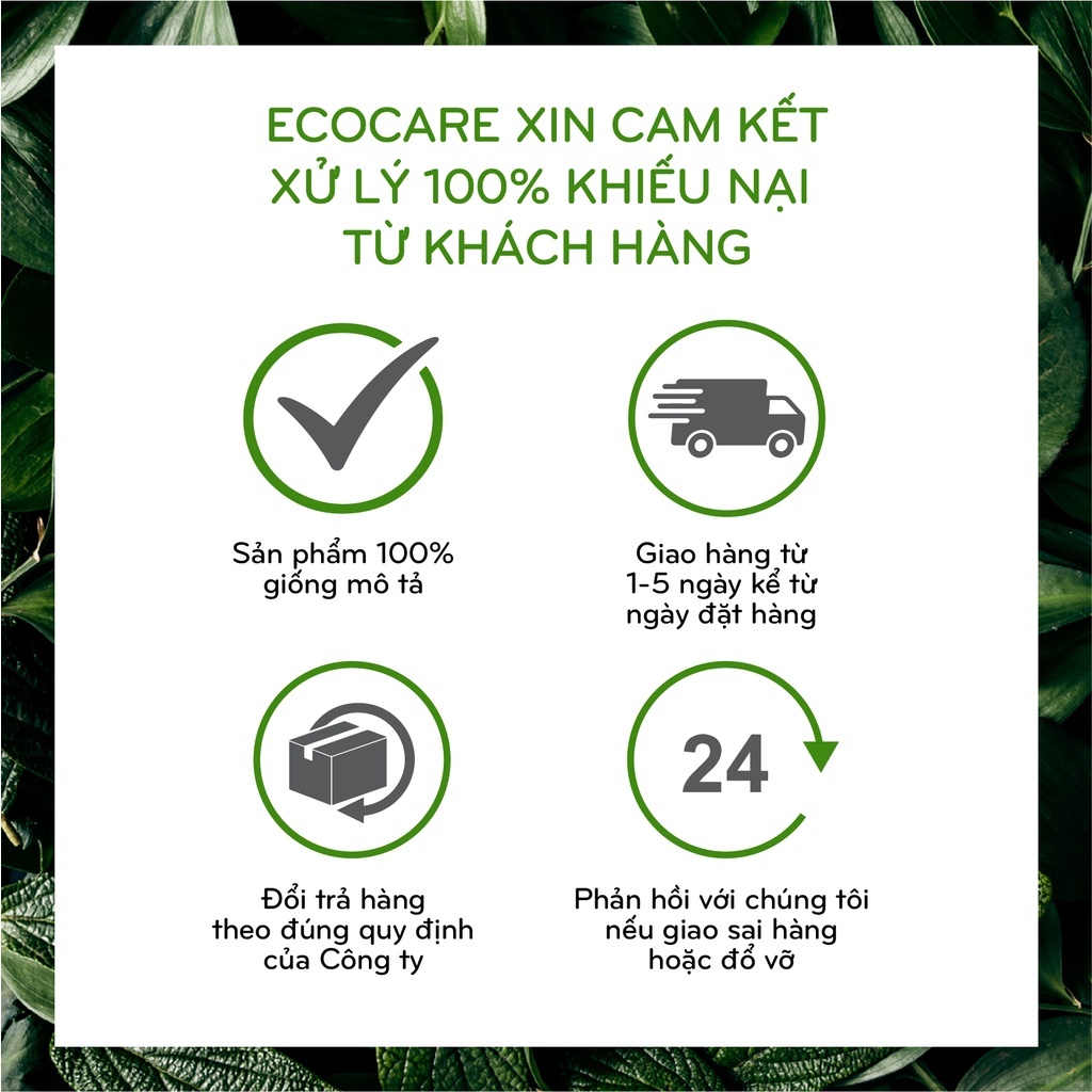 - Sản phẩm Nước lau sàn hữu cơ Bồ hòn Ecocare cam kết: 0% hương liệu, 0% chất tạo màu, 0% chất hóa học độc hại -Hoàn toàn thân thiện với môi trường, sử dụng bao bì là nhựa tái chế
