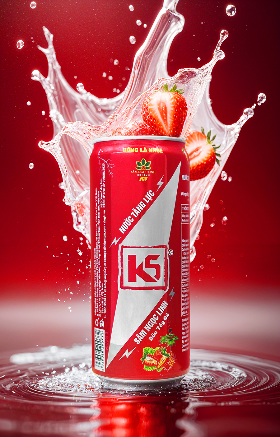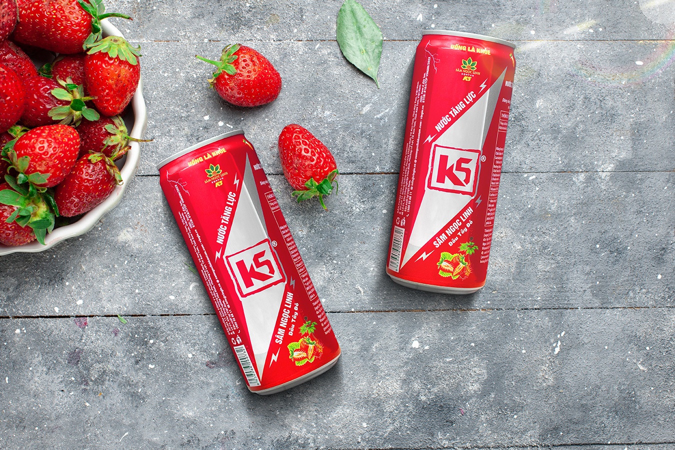 ✨Nước Tăng Lực K5 Sâm Ngọc Linh Lon Lẻ Vị Dâu Tây Đỏ (320ml/Lon)