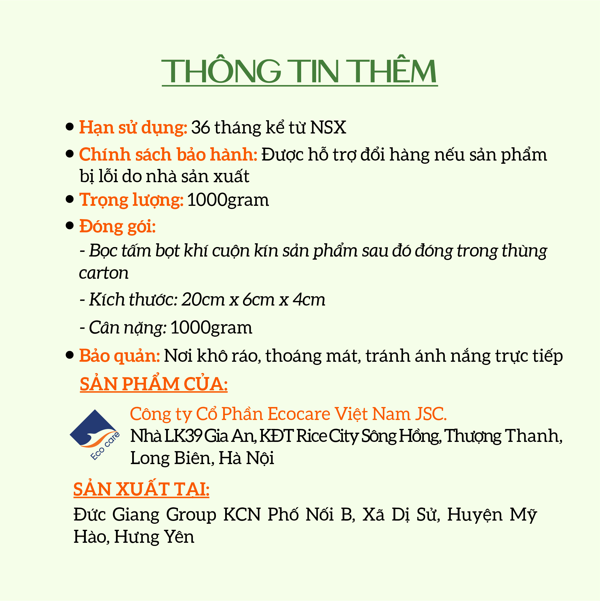 - Trước tiên, Ecocare xin cảm ơn Quý Khách hàng đã tin tưởng lựa chọn sản phẩm Nước Tẩy Bồn Cầu Hữu Cơ Diệt Khuẩn ECOCARE 1L Hương Cam Bạc Hà Thơm Mát, Chai Tẩy Rửa Nhà Vệ Sinh Siêu Sạch