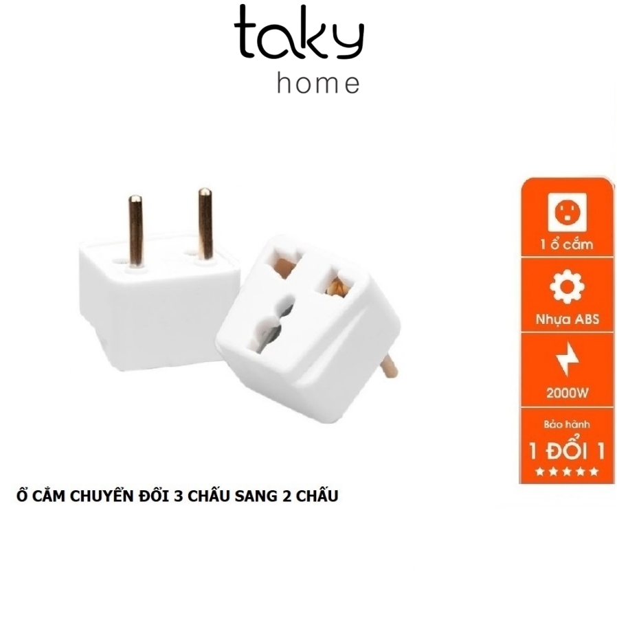 ✨Ổ Cắm Điện - Đầu Chuyển Đổi Phích Điện 3 Chân Sang 2 Chân || 3 Chạc Sang 2 Chấu, Nhỏ Gọn, Tiện Dụng, An Toàn. TakyHome 8611