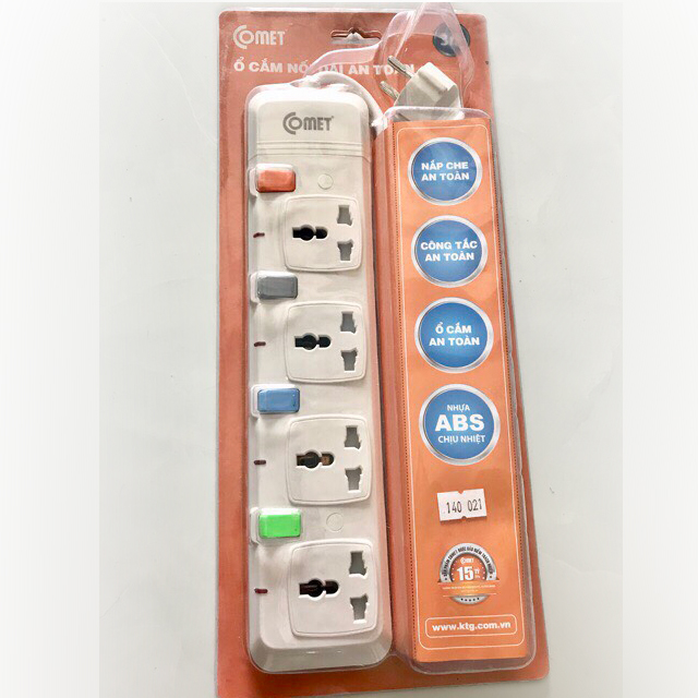 - Ổ Cắm Nối Dài Comet CESG2403 có vỏ ngoài được làm bằng nhựa ABS với trọng lượng nhẹ, chống cháy, cách điện tốt, bảo đảm an toàn cho người sử dụng. - Chất liệu cứng
