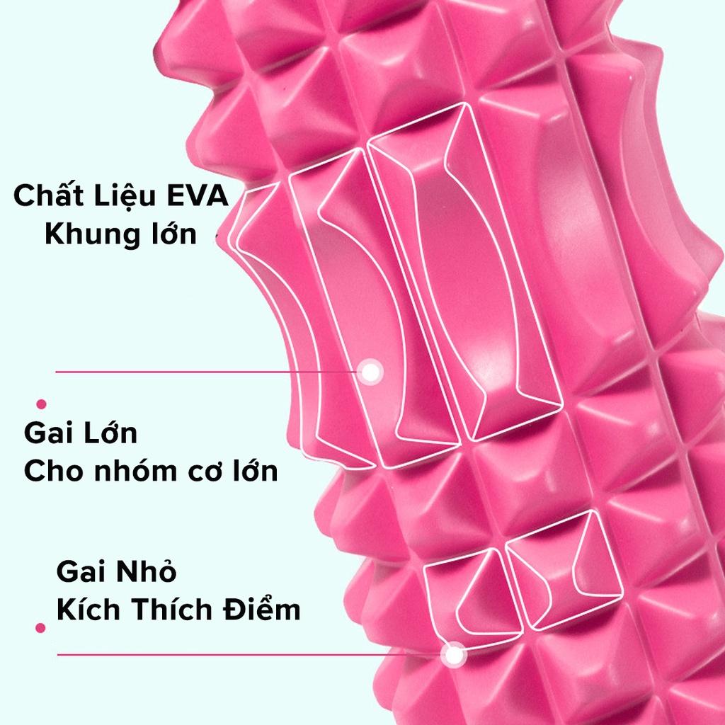 [Màu Hồng] Ống lăn Foam Roller Massage - Con Lăn Yoga Matxa Giãn Cơ Ống Trụ Lăn Xốp Có Gai Hãng miDoctor