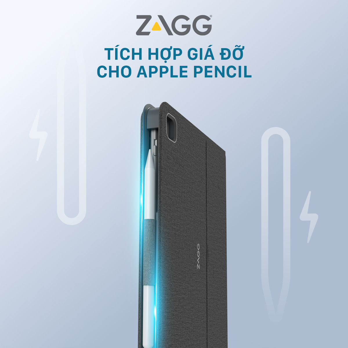 Ngoài ra Zagg Messenger Folio 2 còn tích hợp giá đỡ và nắp gắn từ tính giúp giữ và bảo vệ A.pple Pencil. Giúp bảo vệ tối ưu các thiết bị của bạn.