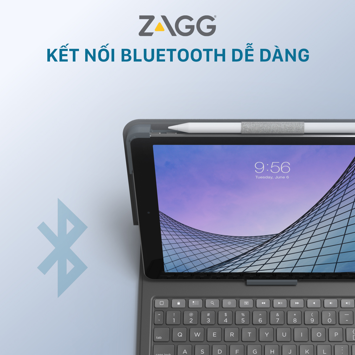 Ốp lưng kèm bàn phím Zagg Messenger Folio dễ dàng kết nối với cho các dòng: i.Pad 10.2’’ (i.Pad Gen 7 & 8), i.Pad 10.5’’ (i.Pad Air Gen 3) thông qua Bluetooth cùng với Khả năng bật / tắt giữa hai thiết bị cùng một lúc và cho phép chuyển đổi qua lại ngay lập tức vô cùng tiện lợi cho người dùng.