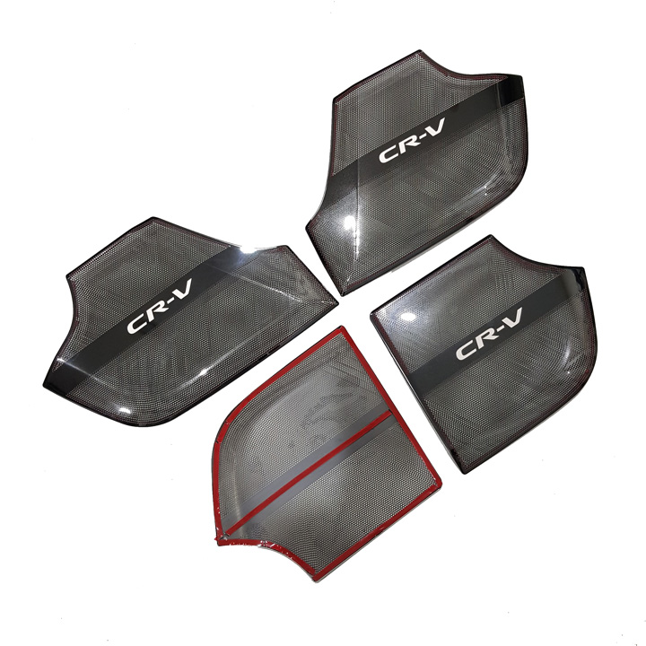 Ốp trang trí, bảo vệ màng loa dành cho xe Honda CRV, CR-V 2017-2020. Chất liệu hợp kim không gỉ vân Titan được sản xuất trên dây chuyền hiện đại, trùng khớp với từng chi tiết màng loa, mang lại sự đẳng cấp và sang trọng cho xế yêu. Không những làm nổi bật không gian nội thất xe mà còn bảo vệ chống xước màng loa của xe trong quá trình sử dụng. Bộ sản phẩm gồm 6 chi tiết bảo vệ màng loa của xe, có sẵn keo 3M ở mặt sau, rất chắc chắn. Khách hàng có thể tự lắp đặt tại nhà, chỉ cần bóc miếng dán 2 mặt, sau đó hơ nóng phần băng keo 3m phía sau và vệ sinh sạch sẽ bề mặt cần dán rồi dán lên trên.