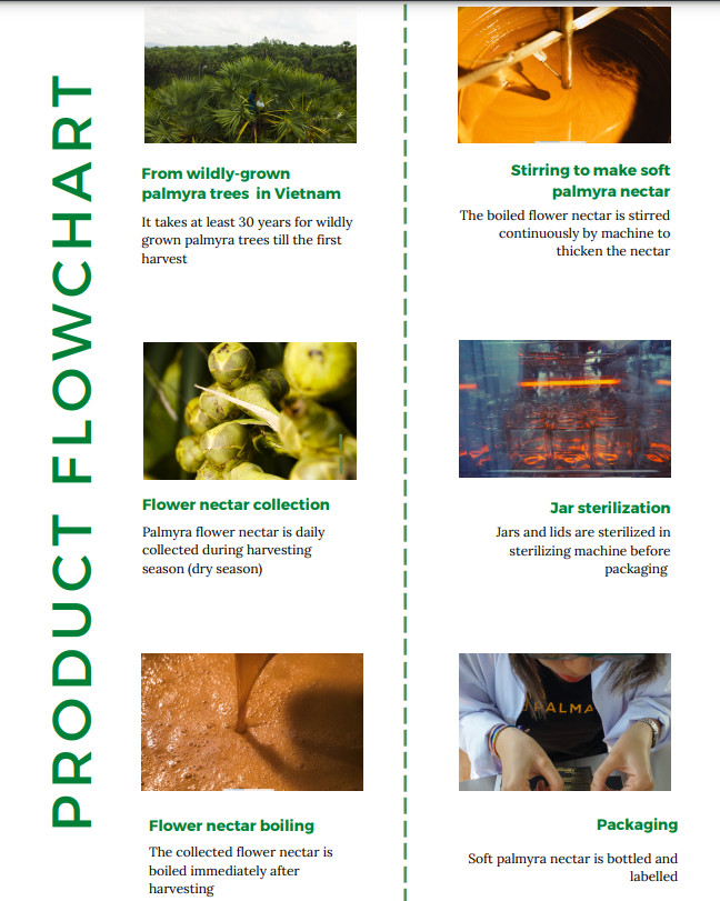 Cây thốt nốt mọc tự nhiên phải mất ít nhất 30 năm mới có thể thu hoạch được nước hoa để nấu mật. Mật thốt nốt sệt Palmania được làm từ 100% nguyên liệu tự nhiên và tuân theo nguyên tắc sản xuất bền vững.