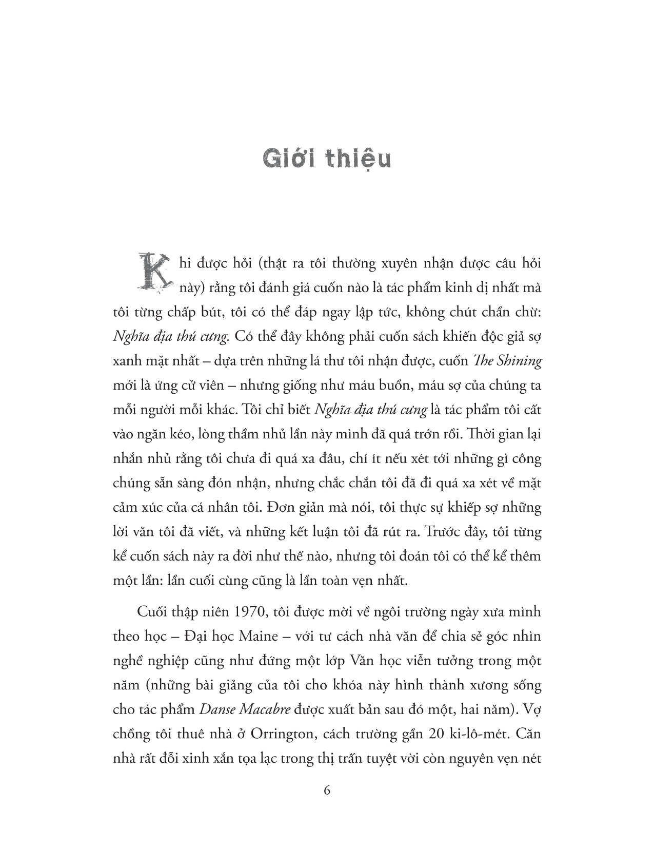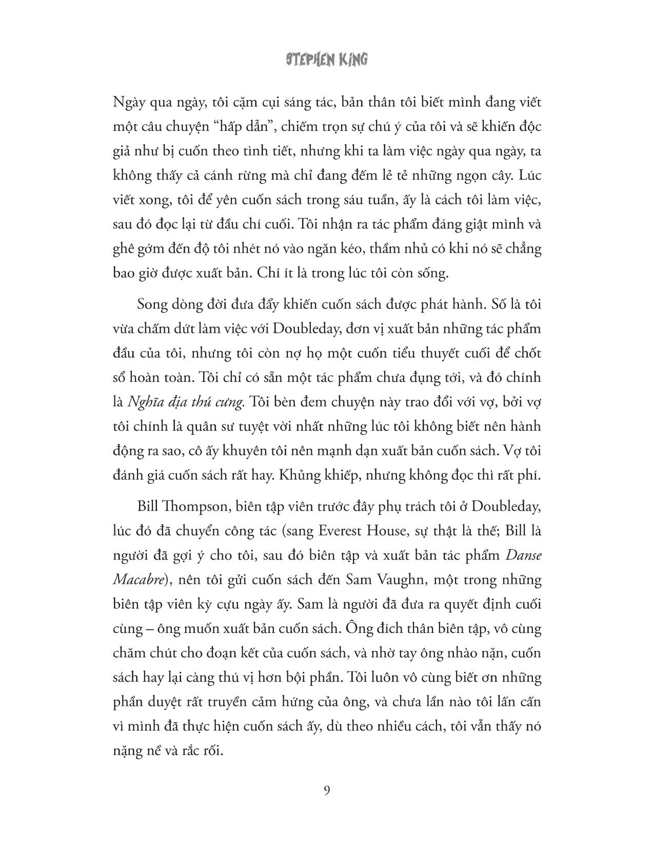 Stephen King là tác giả của hơn 60 cuốn sách, tất cả đều là những cuốn sách bán chạy nhất trên toàn thế giới. Các tác phẩm gần đây của ông bao gồm Fairy Tale, Billy Summers, If It Bleeds, The Institute, Elevation, The Outsider, Sleeping Beauties (viết chung với con trai Owen King), và bộ ba phim Bill Hodges: End of Watch, Finders Keepers và Mr. Mercedes (chiến thắng Giải thưởng Edgar cho Tiểu thuyết hay nhất). Cuốn tiểu thuyết 22/11/63 được The New York Times Book Review bình chọn là cuốn sách hay nhất của năm 2011 và giành được Giải thưởng Sách của Thời báo Los Angeles cho thể loại Bí ẩn / Kinh dị. Các tác phẩm The Dark Tower, It, Pet Sematary và Doctor Sleep của ông đã được chuyển thể thành phim, với It hiện là phim kinh dị có doanh thu cao nhất mọi thời đại. Ông là người đã nhận được Giải thưởng Thành tựu trọn đời của Hiệp hội Nhà xuất bản Âm thanh năm 2020, Giải thưởng Dịch vụ Văn học PEN Hoa Kỳ năm 2018, Huy chương Nghệ thuật Quốc gia năm 2014 và Huy chương của Quỹ Sách Quốc gia năm 2003 cho những đóng góp xuất sắc cho nền văn học Hoa Kỳ. Anh sống ở Bangor, Maine, với vợ, tiểu thuyết gia Tabitha King.