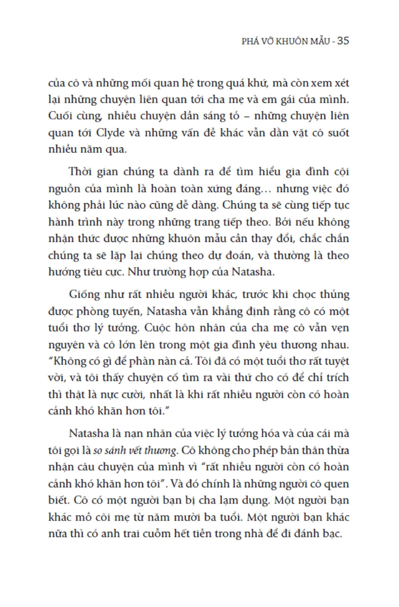 Trong cuốn sách “Phá vỡ khuôn mẫu” (tựa gốc: The Origins of You), tác giả Vienna Pharaon, nhà trị liệu hôn nhân và gia đình sẽ từng bước dẫn dắt bạn tìm hiểu về vết thương cội nguồn của mình. Tác giả cũng sẽ giúp bạn đi tìm nguyên nhân vì sao những câu chuyện, những mối quan hệ trong gia đình vẫn tiếp tục ảnh hưởng đến cuộc sống hiện tại và tương lai của bạn, của con cái bạn; và cách áp dụng phương pháp Chữa lành tận gốc để bạn thoát ra khỏi khuôn mẫu này.