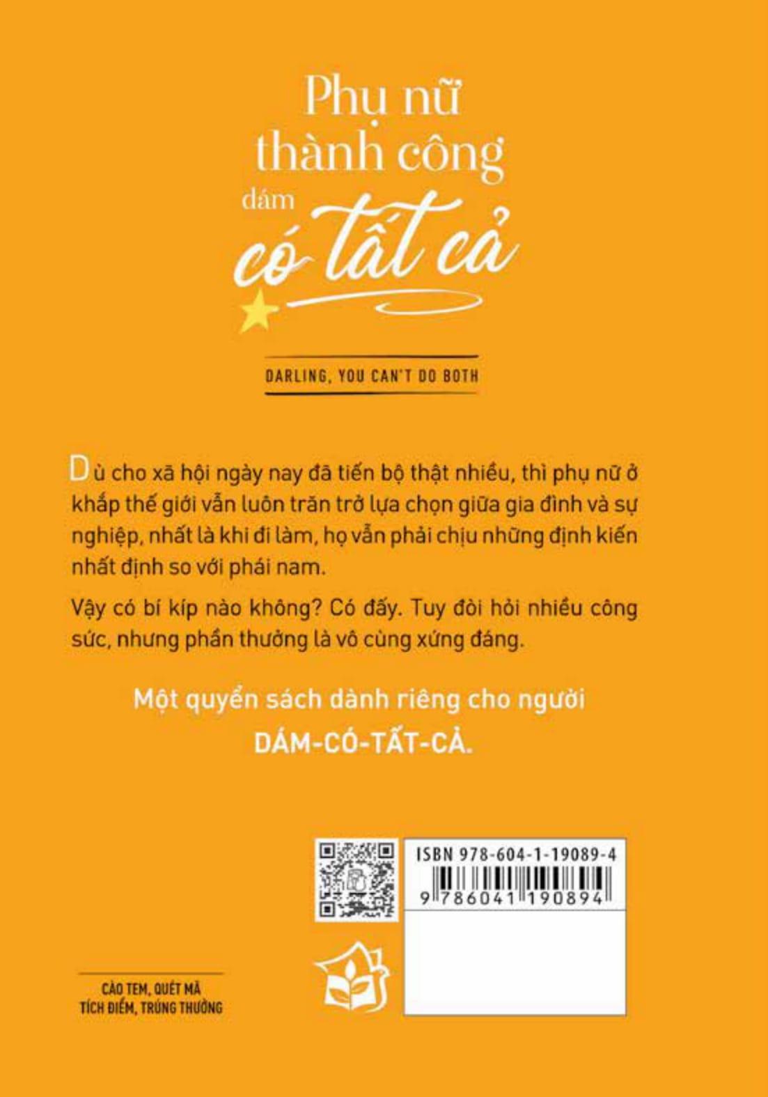 Vậy khi cả thế gian đều thì thầm vào tai bạn rằng: "Cô gái thân mến à, cô không thể làm cả hai việc được đâu", ý rằng gia đình, con cái không thể đi chung với sự thăng tiến cấp cao, thì quyển sách này đặt ra một vấn đề ngược lại: Người phụ nữ thành công hãy DÁM CÓ TẤT CẢ: Sự nghiệp lẫn niềm vui gia đình.