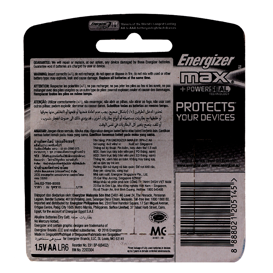- Pin Max 4 + 2 Viên Energizer E91 BP4+2 AA là sản phẩm có thể sử dụng cho các loại máy ảnh, điều khiển từ xa, đèn Pin, máy chơi game không dây, máy nghe nhạc MP3 và các thiết bị kỹ thuật số cá nhân khác.