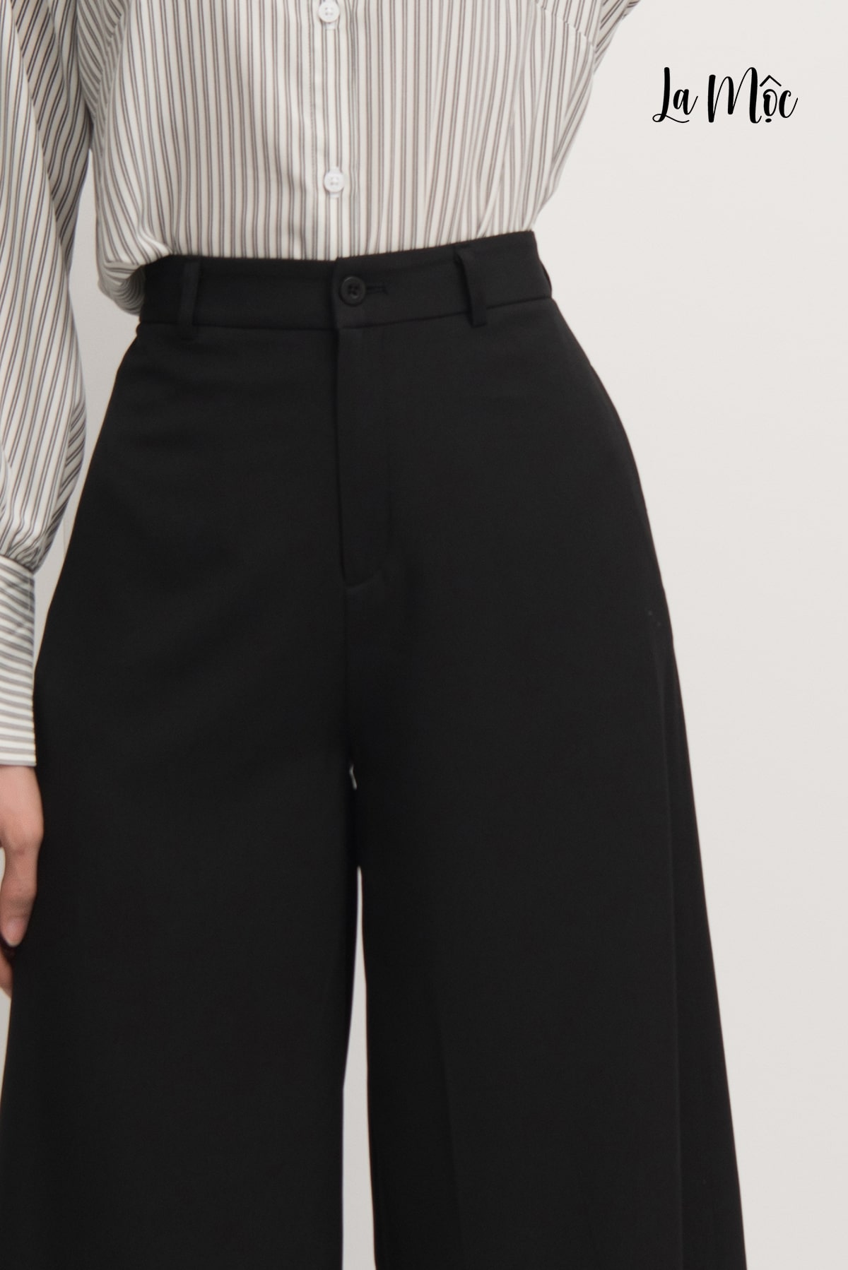 Quần đen ống rộng La Mộc chất liệu xô thun Korea là mẫu thiết kế dành riêng cho những cô nàng ưa thích sự sành điệu. Thiết kế chú trọng từng đường may. Phong cách