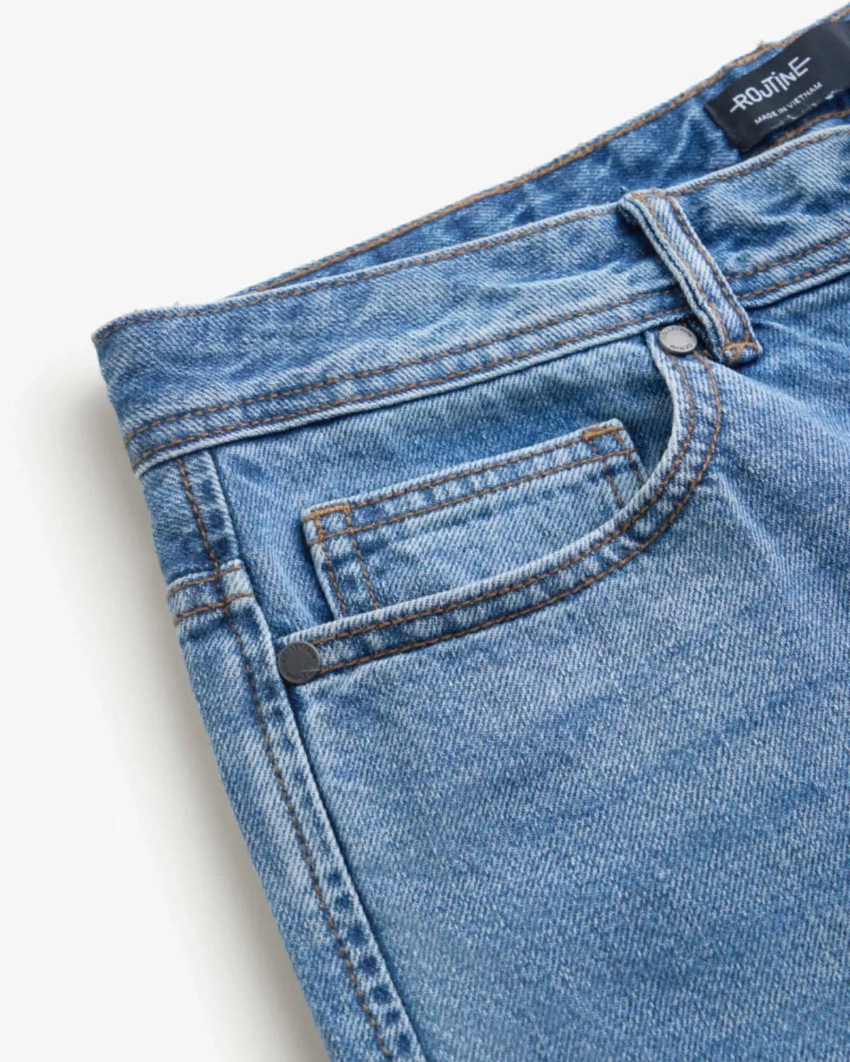 Quần denim nam Form Slim cropped - RT 10S25DPA105C | ROUTINE CÀ MAU Đặc điểm nổi bật Form : Slim cropped Fabric : Denim Gender: Nam Collection: Core Thông tin chi tiết: Mẫu quần denim