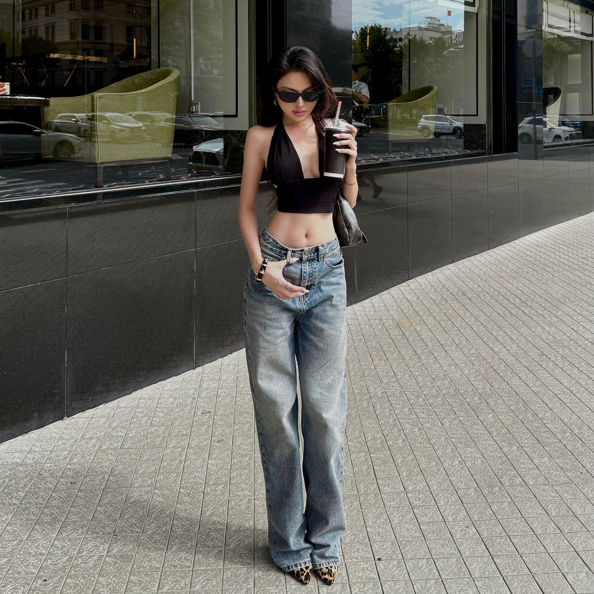 Review quần jean ống rộng lưng cao nhà Aaa Jeans