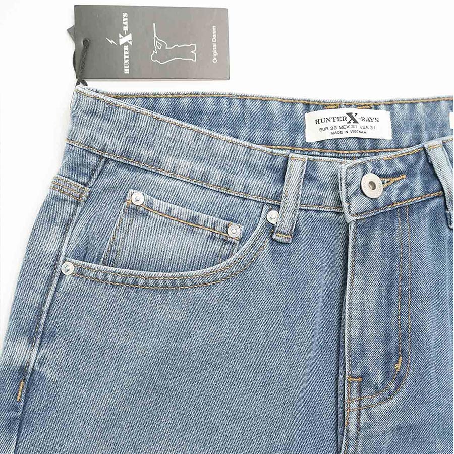 Quần Jeans Nam Cao Cấp HUNTER X-RAYS Form Slimfit Thun Màu Xanh Phủ Dơ NhẹD33 Đặc điểm nổi bật: Nút được đúc nguyên khối bằng đồng và nổi bật thương hiệu HUNTER X-RAYS đảm bảo