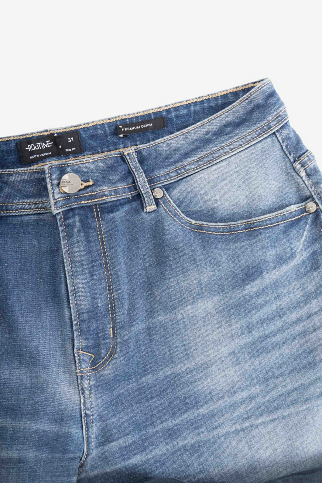 Quần Jean Nam ROUTINE Ống Ôm Xanh Trơn Cotton Spandex Form Slim - 10S24DPA004R1 | ROUTINE CÀ MAU ĐẶC ĐIỂM NỔI BẬT Nhóm sản phẩm Quần Jean Form dáng Slim Giới tính Nam Chất liệu