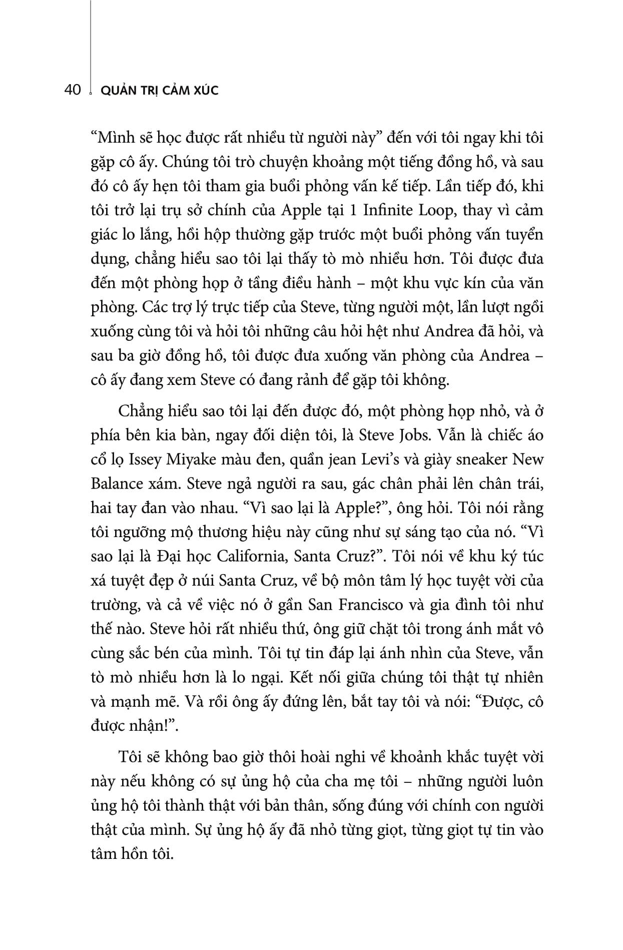 Hãy xem “Quản trị cảm xúc” như một tấm bản đồ để đi đến những lựa chọn tốt hơn – những lựa chọn bắt nguồn từ chính con người bên trong của bạn. Nếu bạn bắt đầu với con đường này, bạn sẽ tràn đầy niềm tin cũng như sức sống để thu nhỏ thế giới rộng lớn cũng như biến thế giới trở thành một nơi tuyệt vời hơn cho cuộc sống của bạn và cả những người xung quanh.