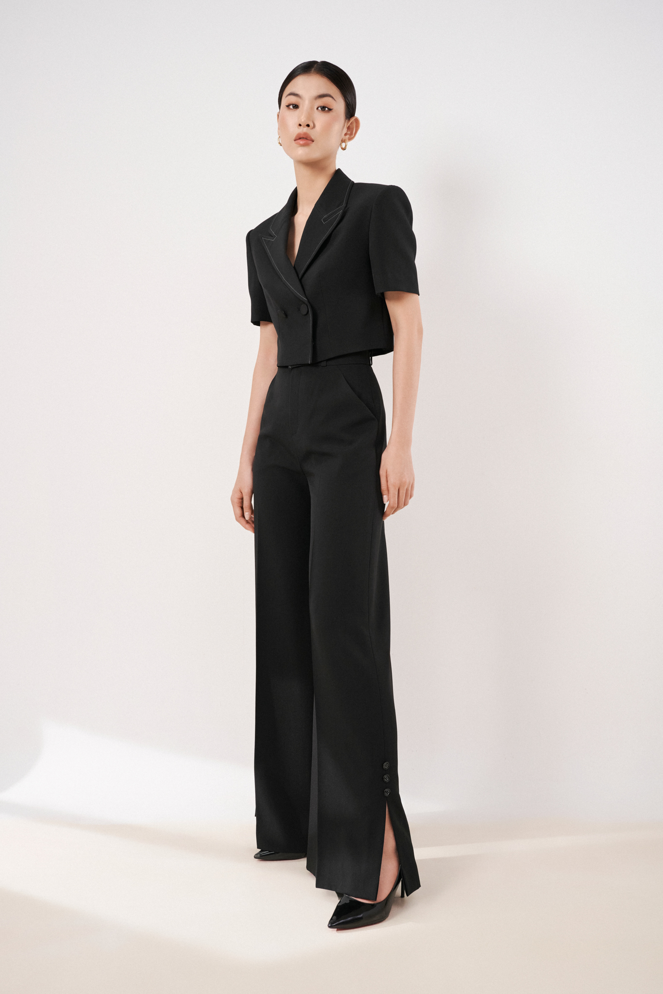 1. Thông tin sản phẩm | Quần suông hơi loe, xẻ V 2 bên phía ngoài ống quần. Quần suông ống loe Avery Trouser là một mảnh ghép hoàn hảo cho áo croptop blazer giúp