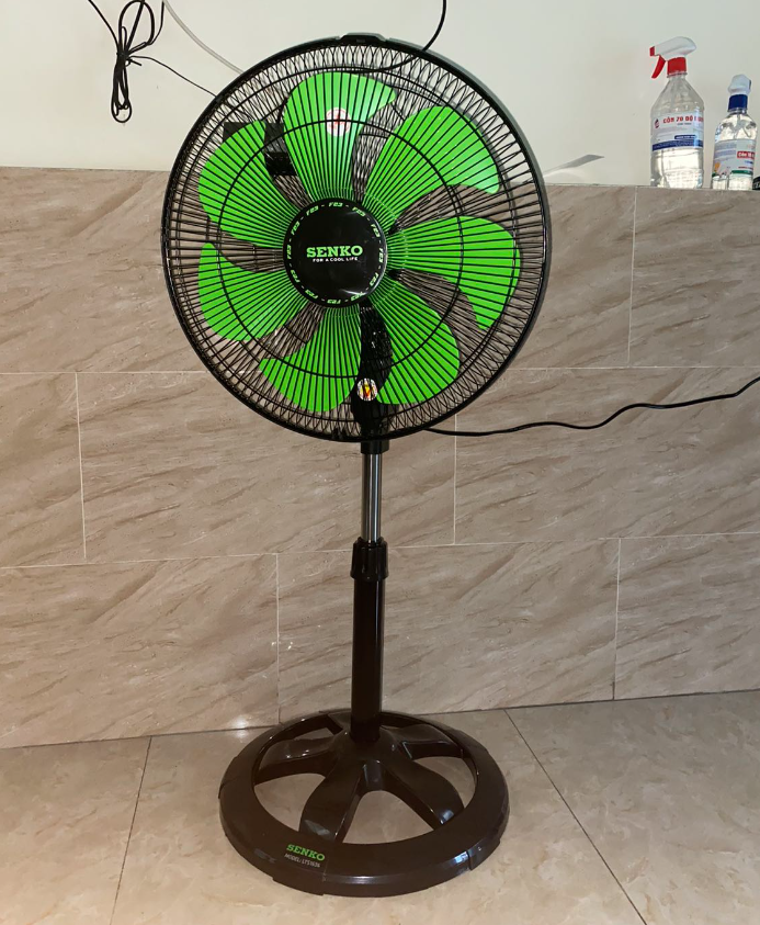 Quạt điện đứng 7 cánh Senko LTS1636 cao 96cm có sải cánh 39cm, công suất tiêu thụ điện 65W tiết kiệm điện năng. kích thước quạt cao tối đa 96cm x 47cm , quạt rút ngắn lại tối thiểu 86cm