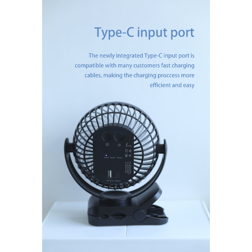 Quạt Kẹp Tích Điện Mini Để Bàn Kiêm Sạc Dự Phòng Yoobao F8 3in1 Có Đèn Led Pin 8000mah Dùng 14-33h Liên Tục • Mã sản phẩm: F8 • 2 công tắc,: công tắc đèn