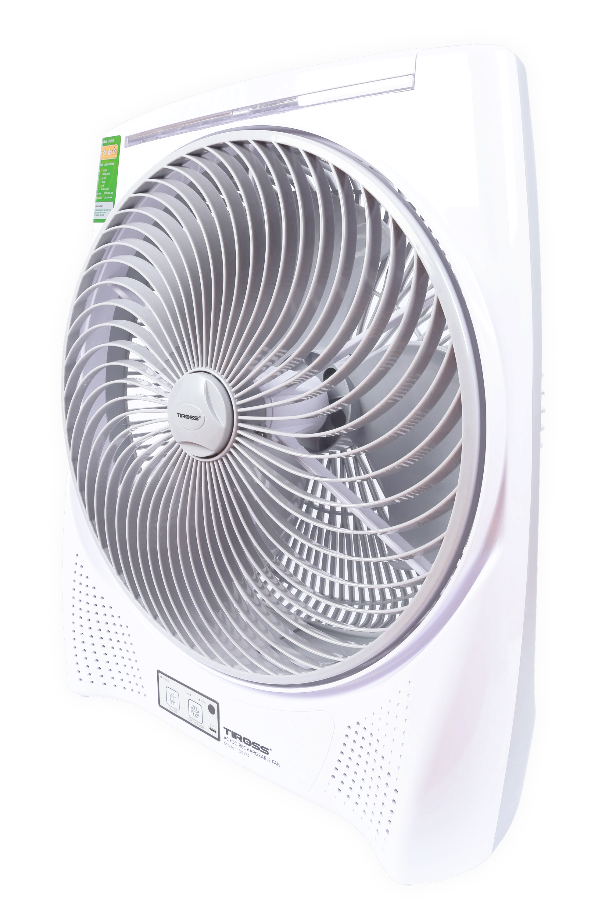 Quạt sạc tích điện Tiross TS9172 sử dụng pin sạc Lithium 6000mAh và kết hợp đèn led siêu sáng với khả năng hoạt động từ 3 - 5h. Tiross Việt Nam phân phối và bảo