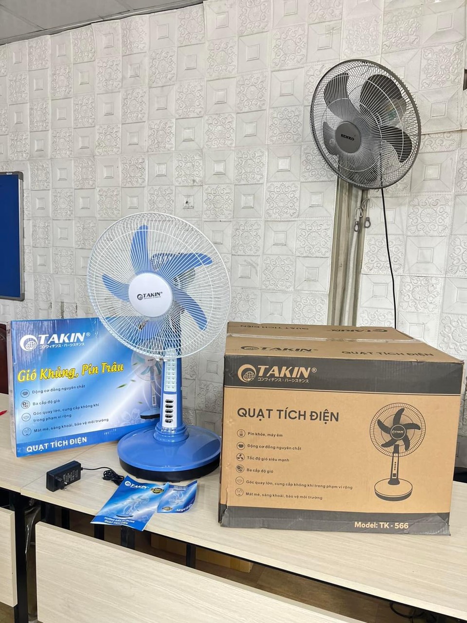 Thông số kỹ thuật quạt tích điện Takin TK-566 Quạt tích điện Takin TK-566 dễ dàng sử dụng, mang đến gió mát, không thua kém gì quạt điện. Sản phẩm này chạy bằng động cơ đồng