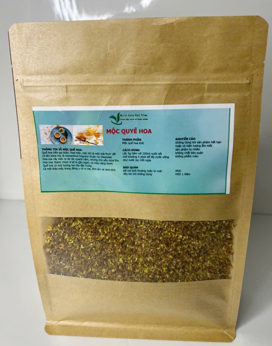• Dùng 1–2 lần mỗi ngày, pha lại 2–3 lần đến khi trà nhạt. THÔNG TIN SẢN PHẨM Quế hoa - Mộc hoa Ngày sản xuất: Xem trên bao bì Hạn sử dụng: 12 tháng kể từ ngày sản xuất Không sử dụng khi sản phẩm hết hạn hoặc có hiện tượng ẩm mốc