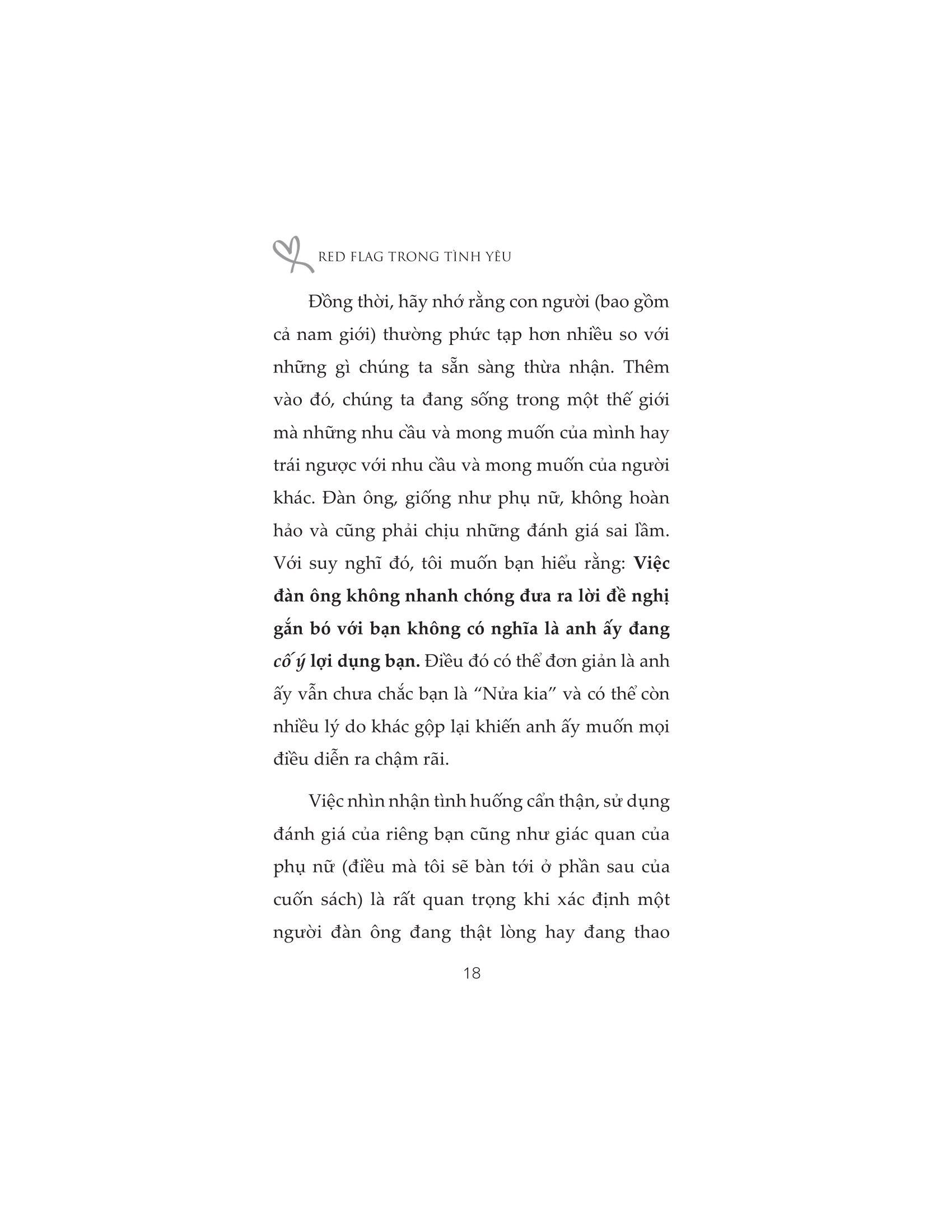 Và cuốn sách “Red Flag trong tình yêu” sẽ giúp bạn sẽ có cái nhìn sâu sắc hơn về cách một người đàn ông suy nghĩ và tương tác với một người phụ nữ khi anh ta không thực sự quan tâm đến cô ấy. Vớicuốn sách này, bạn sẽ biết được: