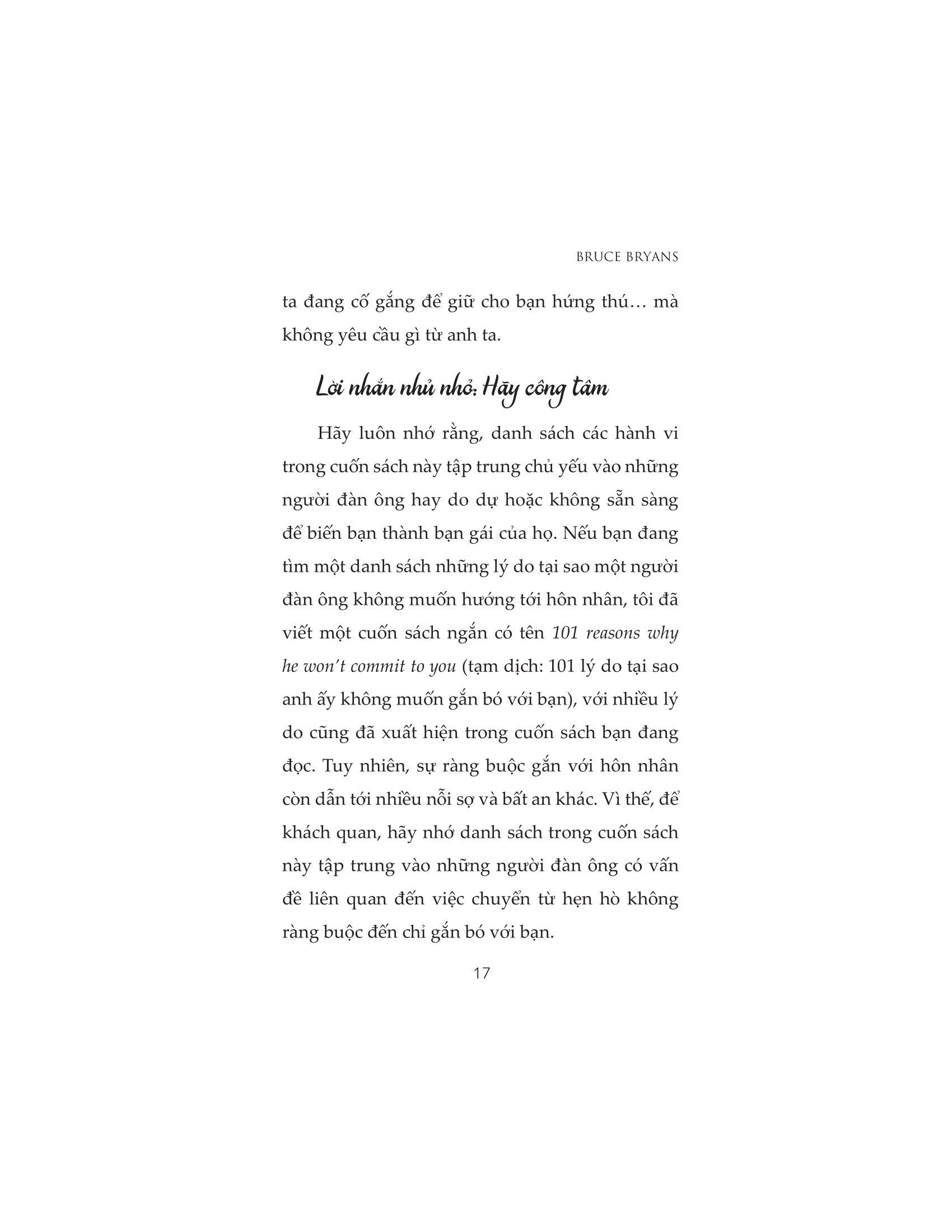 Đàn ông không thật sự “sợ ràng buộc”. Khi một người đàn ông nói với bạn rằng anh ấy “sợ ràng buộc”, rất có thể điều anh ta thực sự muốn nói là anh ta không quan tâm đến bạn và chỉ lợi dụng bạn để giết thời gian cho đến khi gặp được ai đó “tốt hơn”.