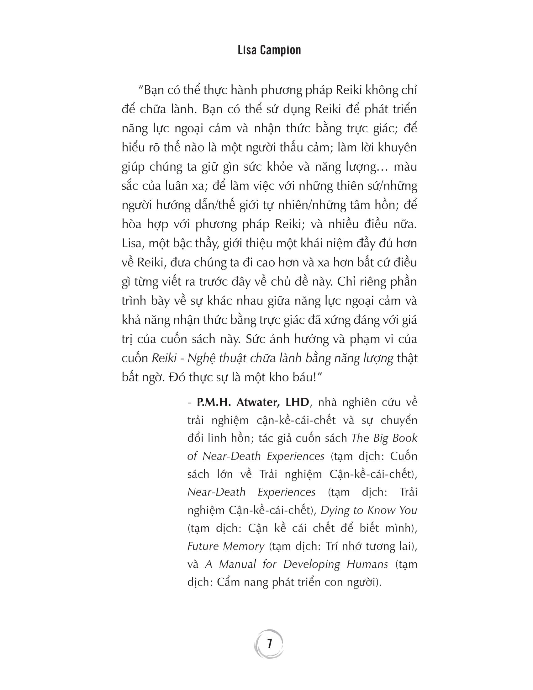Nếu bạn yêu thích phương pháp Reiki và muốn nâng Reiki lên mức độ cao hơn, bạn đã chọn đúng cuốn sách mình cần. Lòng trắc ẩn và kinh nghiệm của một giảng viên, một người chữa lành, một người ngoại cảm, và một tác giả của Lisa sẽ biến hành trình thực hành Reiki đi sâu hơn vào việc chữa lành, biến điều đó thành một trải nghiệm làm thay đổi cuộc đời.