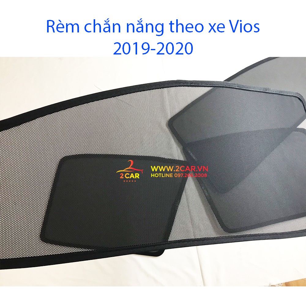 Rèm che nắng xe Toyota Vios 2019- 2022 có hút nam châm cao cấp Cấu tạo Rèm che nắng Vios 2019- 2022 1 bộ gồm 4 miếng cho 4 cánh cửa, có sẵn hút nam