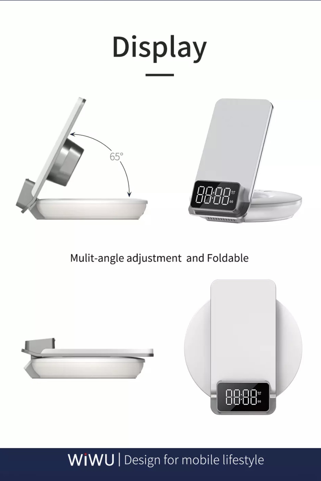Dock Sạc Cao Cấp Không Dây WIWU Triple 3in1 W001 - Sạc Nhanh, Tiện Lợi, Sang Trọng Sạc không dây 3 trong 1, gấp gọn tiện lợi: WIWU Triple 3in1 W001 là giải pháp sạc