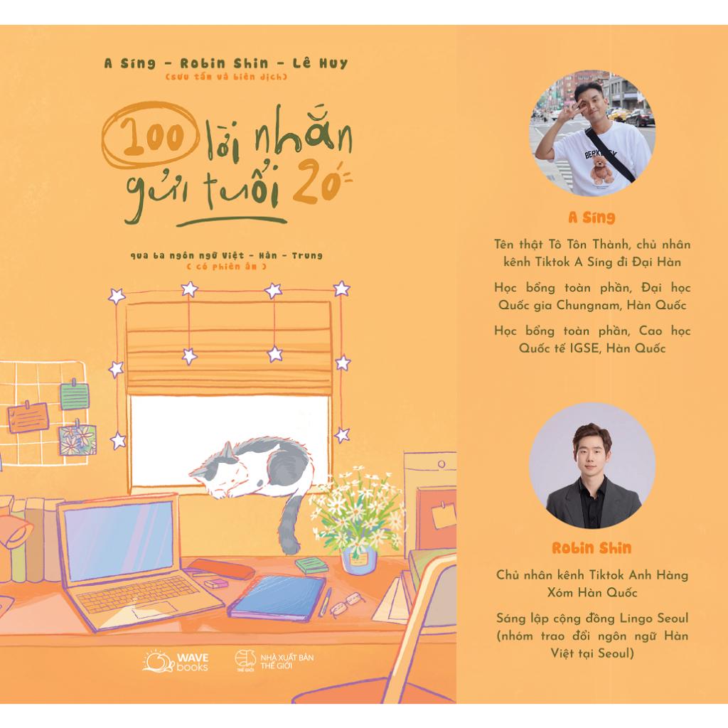 100 lời nhắn gửi tuổi 20 là cuốn sách tam ngữ Việt - Hàn - Trung, do ba tác giả trẻ tài năng A Síng, Robin Shin và Lê Huy sưu tầm, biên soạn dành tặng riêng cho các bạn ở độ tuổi đôi mươi.