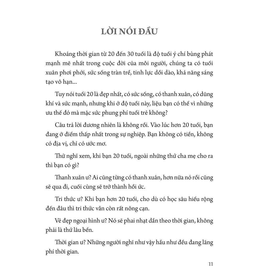 Khoảng thời gian từ 20 đến 30 tuổi là độ tuổi ý chí bùng phát mạnh mẽ nhất trong cuộc đời của mỗi người, chúng ta có tuổi xuân phơi phới, sức sống tràn trề, tinh lực dồi dào, khả năng sáng tạo vô hạ