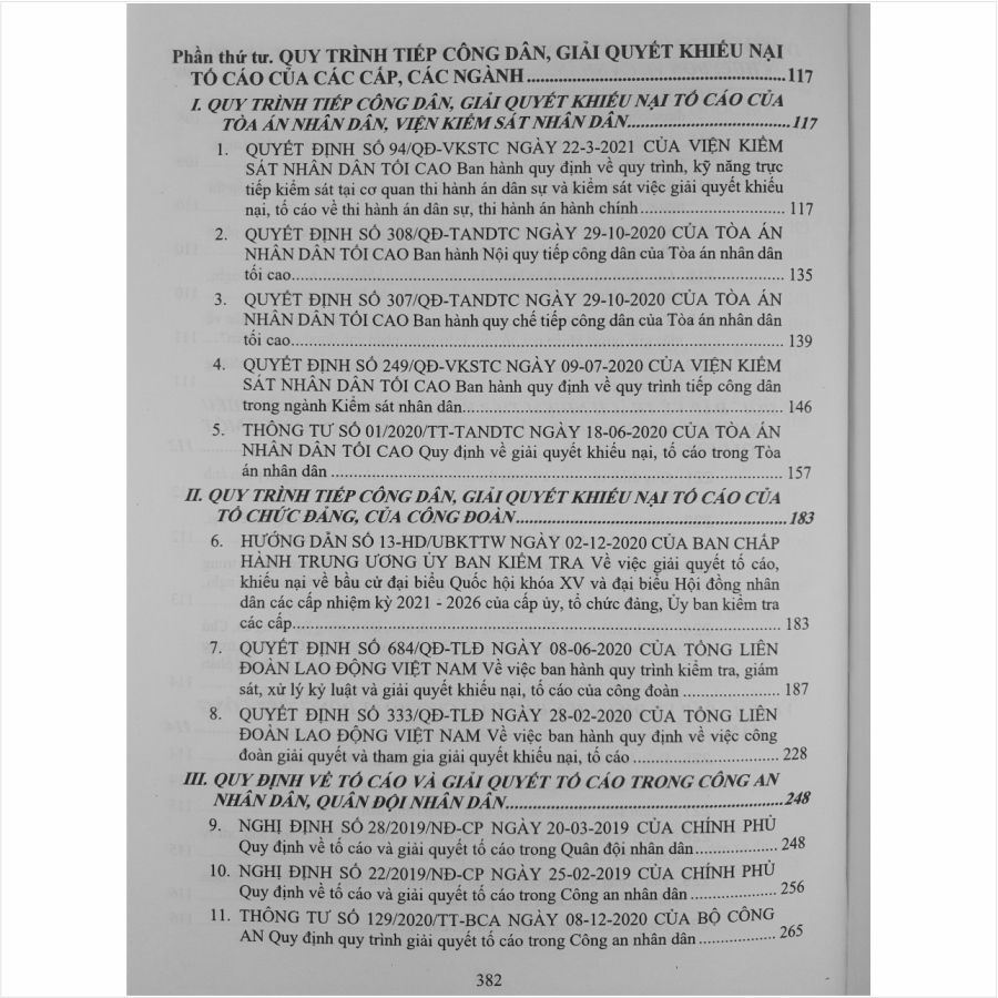 LUẬT KHIẾU NẠI - LUẬT TỐ CÁO (SỬA ĐỔI) -LUẬT TIẾP CÔNG DÂNQUY TRÌNH TIẾP CÔNG DÂN, XỬ LÝ ĐƠN THƯ KHIẾU NẠI, TỐ CÁO, KIẾN NGHỊ PHẢN ẢNH TRONG CÁC CƠ QUAN, ĐƠN VỊ.