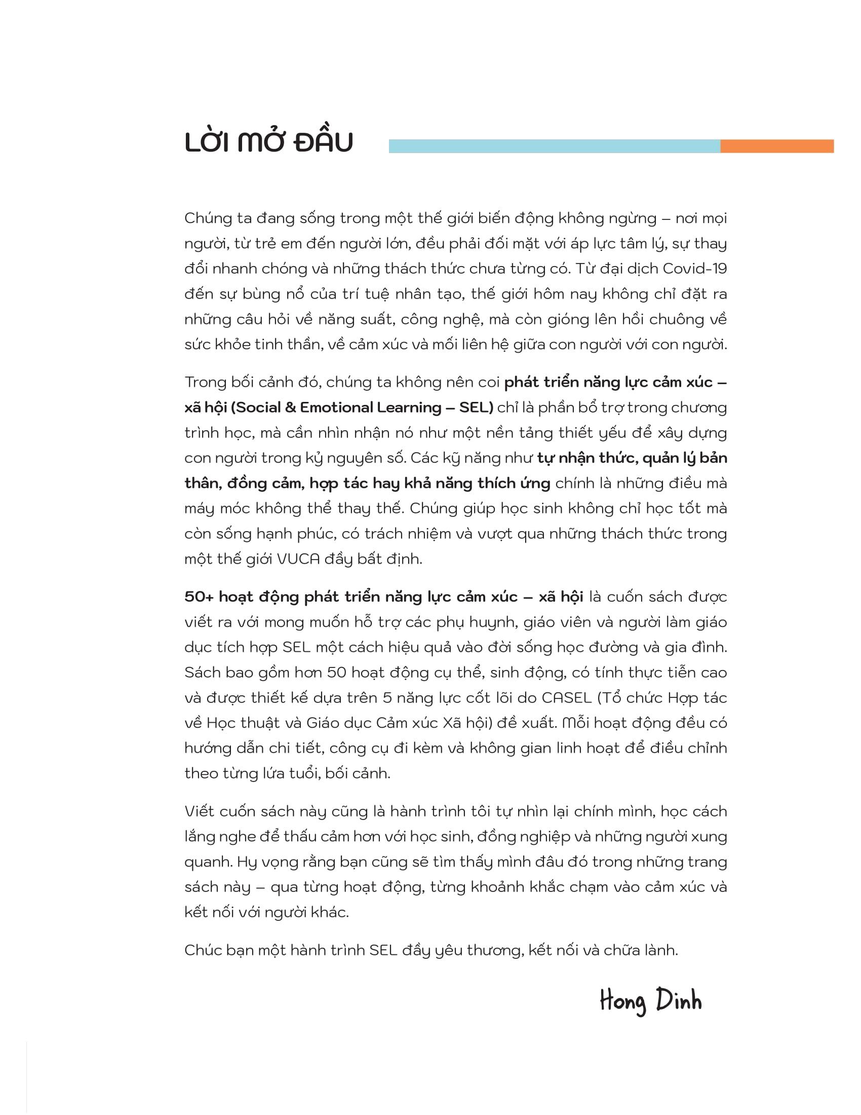 50+ Hoạt Động Phát Triển Năng Lực Cảm Xúc-Xã Hội 50+ hoạt động phát triển năng lực cảm xúc – xã hội là cuốn sách dành cho cha mẹ, thầy cô và những người làm