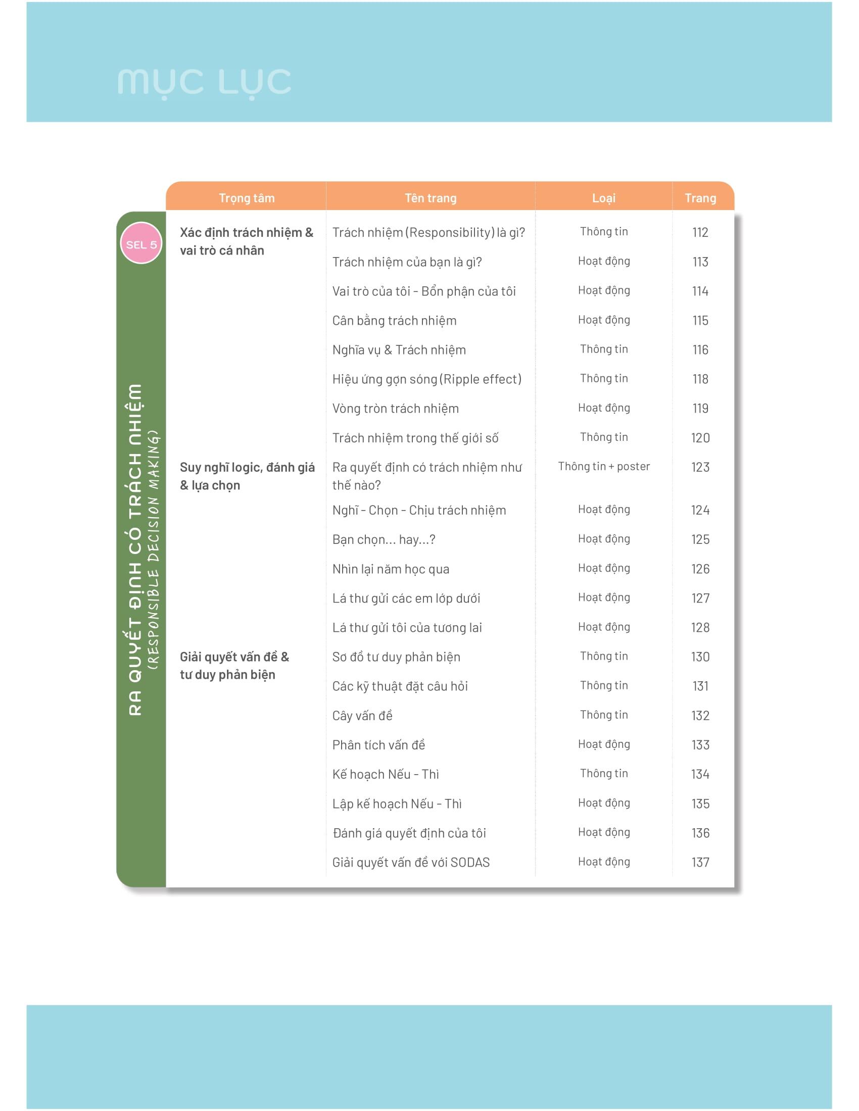 Với 50+ hoạt động phát triển năng lực cảm xúc – xã hội, cha mẹ và thầy cô sẽ được cung cấp hơn 50 hoạt động thực hành cụ thể, sinh động và dễ dàng áp dụng trên lớp, trong gia đình hoặc các buổi sinh hoạt nhóm. Đây là những hoạt động được thiết kế khoa học, rõ ràng với những ưu điểm nổi bật sau: