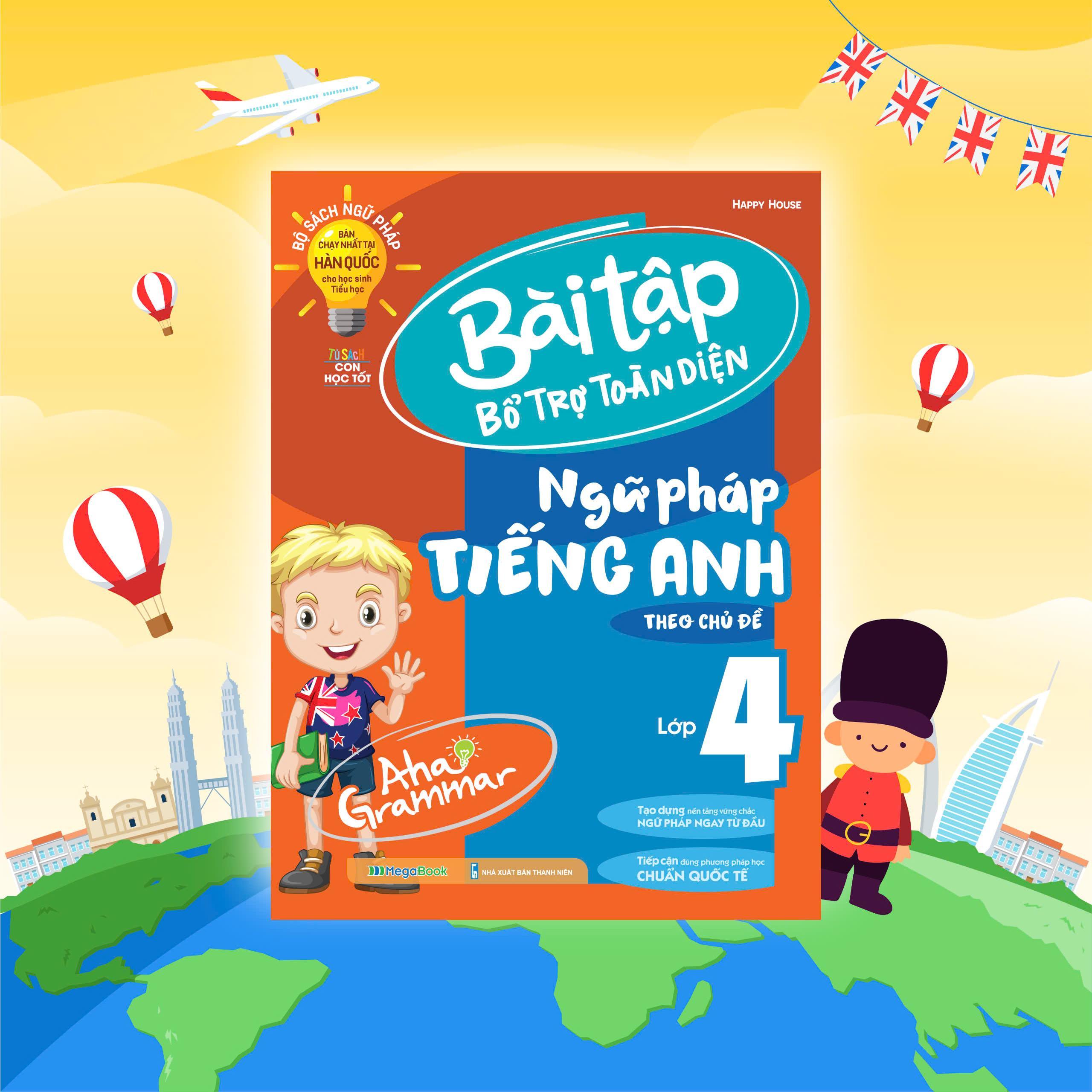 Aha Grammar Bài tập bổ trợ toàn diện ngữ pháp Tiếng Anh lớp 4 theo chủ đề là cuốn sách tổng hợp các bài tập bổ trợ của chương trình ngữ pháp tiếng Anh lớp 4 theo phương pháp chuẩn Quốc tế.