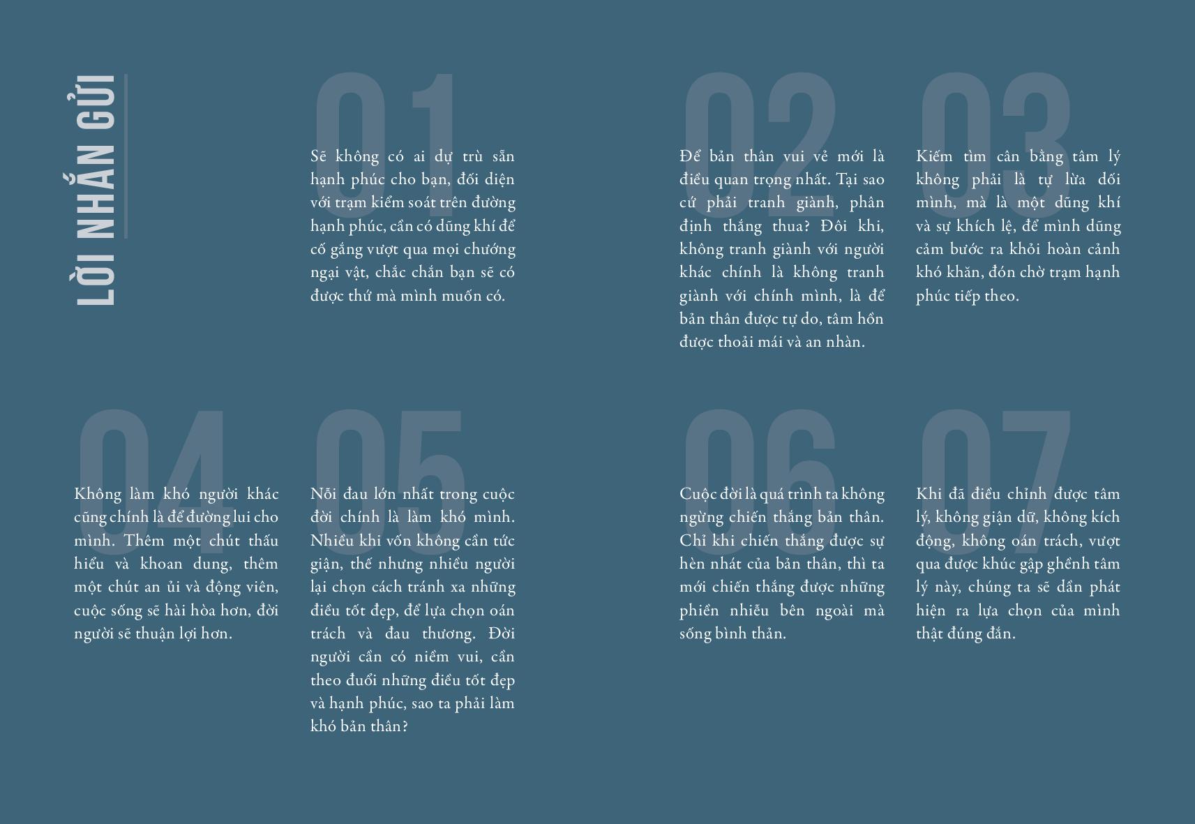 Với góc nhìn đầy thấu đáo, tác giả Hoa Dương soi lăng kính qua từng vấn đề, từng sự việc, giúp bạn nhận ra việc cân bằng cảm xúc có mối tương quan trực tiếp tới từng thời khắc của cuộc đời mỗi người. Thay vì tức giận, nếu bạn lựa chọn một tâm thế, một góc nhìn lạc quan hơn, thì tất cả những khó chịu sẽ trở nên nhỏ nhặt. Chỉ cần bạn dũng cảm, lựa chọn đi theo mặt trời, cuộc đời tự nhiên sẽ tràn ngập ánh nắng và niềm vui.