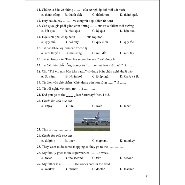 Phần 2: Các bài luyện tập (Toán – Tiếng Việt – Tiếng Anh – Khoa học – Lịch sử và Địa lí)