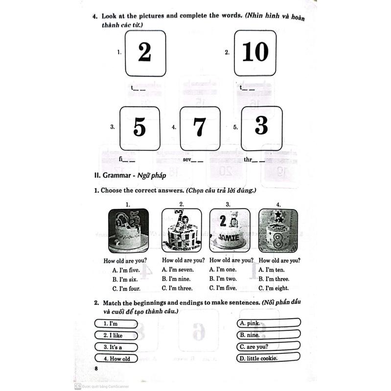 Với các phần Từ vựng và Ngũ pháp, các em sẽ được ôn lại các từ vựng và mâu cầu đã học trong bài, sau đó ứng dụng các từ vựng và mẫu câu đó