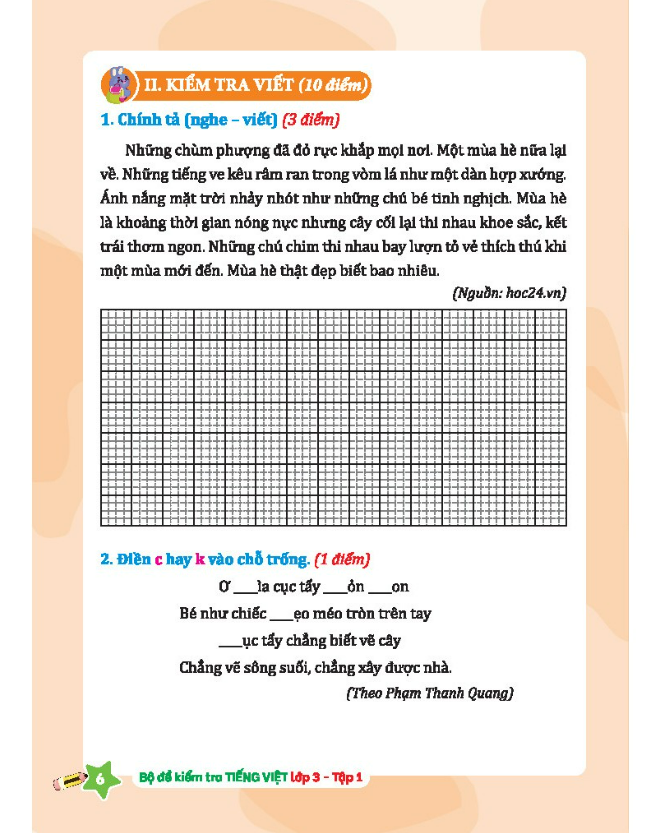 ============ Giới Thiệu Sách ========== Bộ đề kiểm tra Tiếng Việt lớp 3 tập 1 (kết nối trí thức với cuộc sống) Với mục tiêu là phát triển năng lực, phẩm chất của học sinh,