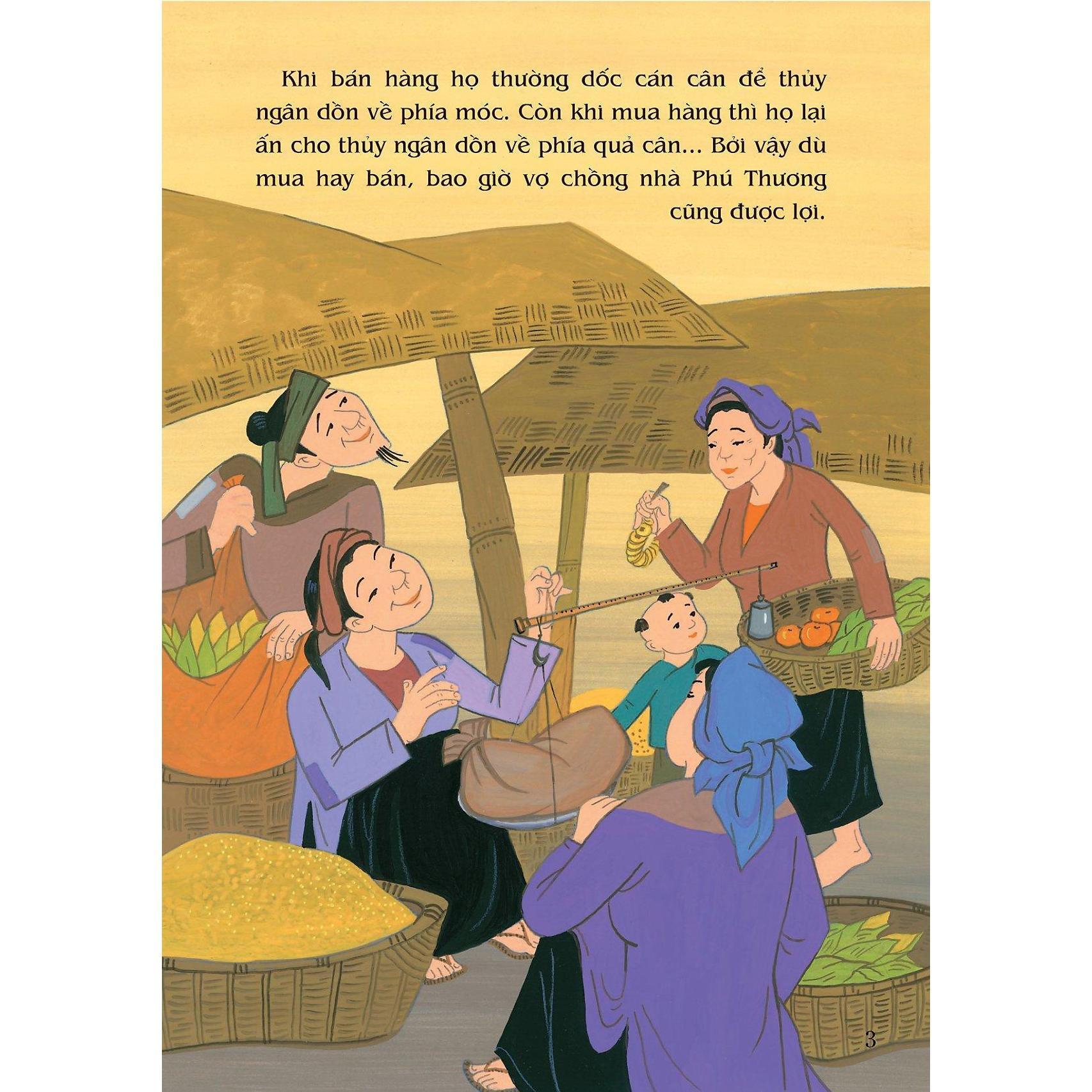 Vợ chồng nhà Phú - Thương nhờ cho thêm giọt t.hủy ngân vào cái cân giúp cân điêu bán đắt mà nhanh chóng trở nên giàu có. Khi thấy của nả đã nhiều, họ bàn nhau mang phá bỏ cái cân đi. Ngờ đâu, khi chẻ cái cân ra, hai vợ chồng bàng hoàng thấy một cục máu đỏ tươi rơi xuống. Tiếp đó, vợ chồng nhà buôn còn kinh hãi tột độ khi biết rằng hai đứa con trai kháu khỉnh nhà m.ình chính là hai con quỷ Ngọc Hoàng sai xuống để phá hết cái gia tài đồ sộ của họ. Chỉ có lòng thật thà và bàn tay lao động mới giúp người ta có được hạnh phúc thực sự - đó là lời nhắn nhủ thâm sâu từ câu chuyện này.