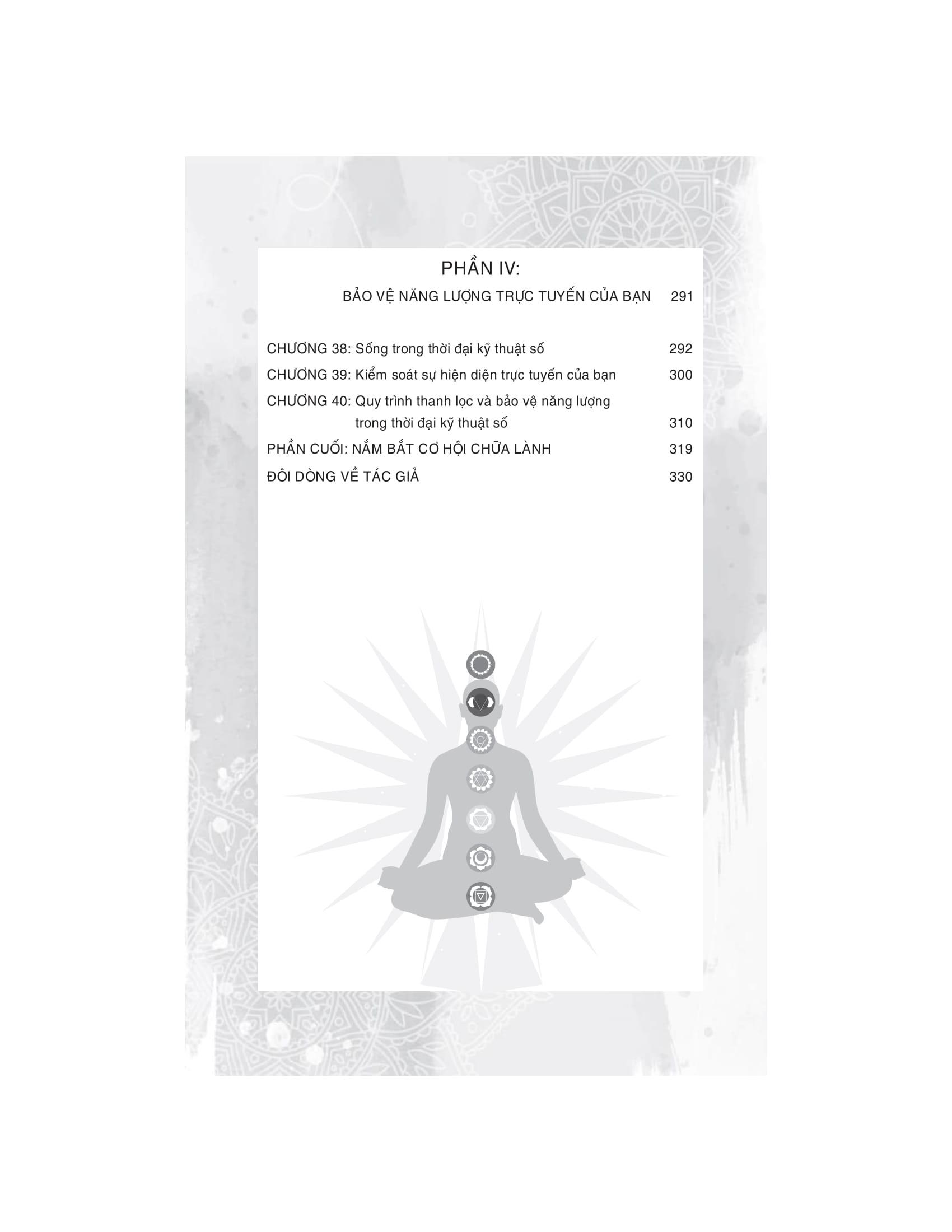 Không chỉ mang đến những phương pháp thực tiễn giúp làm sạch và bảo vệ trường năng lượng cá nhân mà đây còn là cuốn sách đầu tiên đề cập đến vấn đề “cuộc tấn công năng lượng” trong môi trường trực tuyến – một khía cạnh vô hình nhưng ảnh hưởng lớn đến cuộc sống ngày nay.