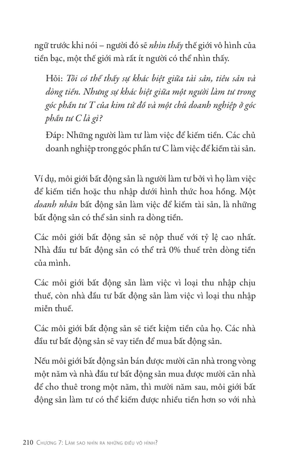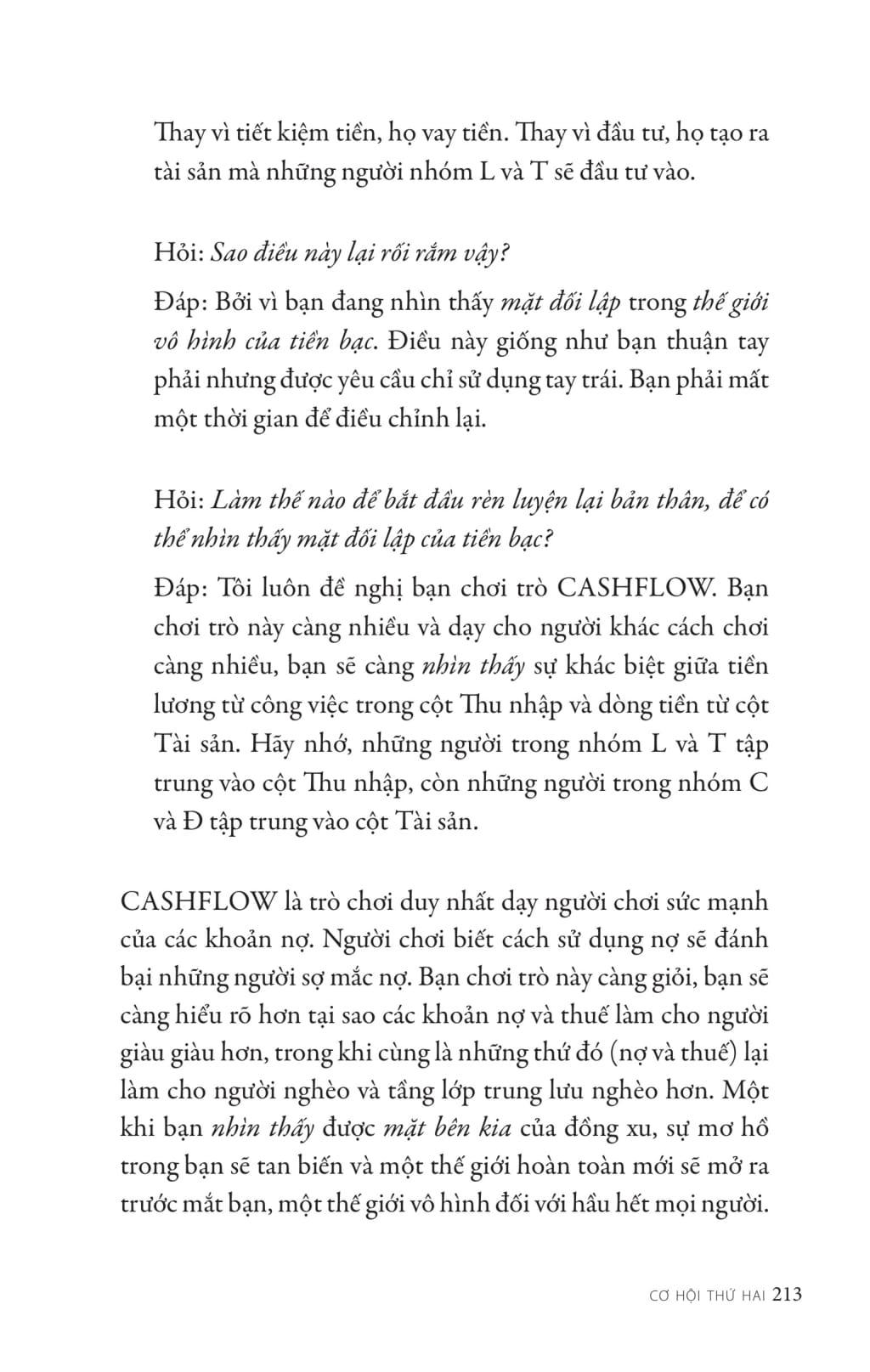 Quyển sách này viết cho những cá nhân nhận ra đã đến lúc phải làm gì đó khác đi. Nó dành cho những ai nhận ra việc tiết kiệm tiền là điên rồ trong khi các ngân hàng đang in hàng nghìn tỷ đô-la; việc đầu tư dài hạn vào thị trường chứng khoán sắp sụp đổ cũng là điên rồ; và việc quay lại trường học cũng điên nốt, vì nhà trường đâu có dạy gì nhiều về tiền bạc.