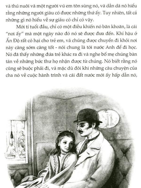 Nhưng rồi một biến cố trọng đại xảy ra, cha của Sara qua đời, tài sản của ông hoàn toàn tiêu tán, Sara trở thành đứa trẻ côi cút và hoàn toàn trắng tay. Cô bé bỗng rơi vào cảnh lao dịch, chạy việc vặt ở trường, bị ghẻ lạnh và bị ngược đãi