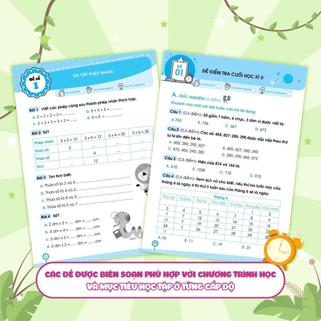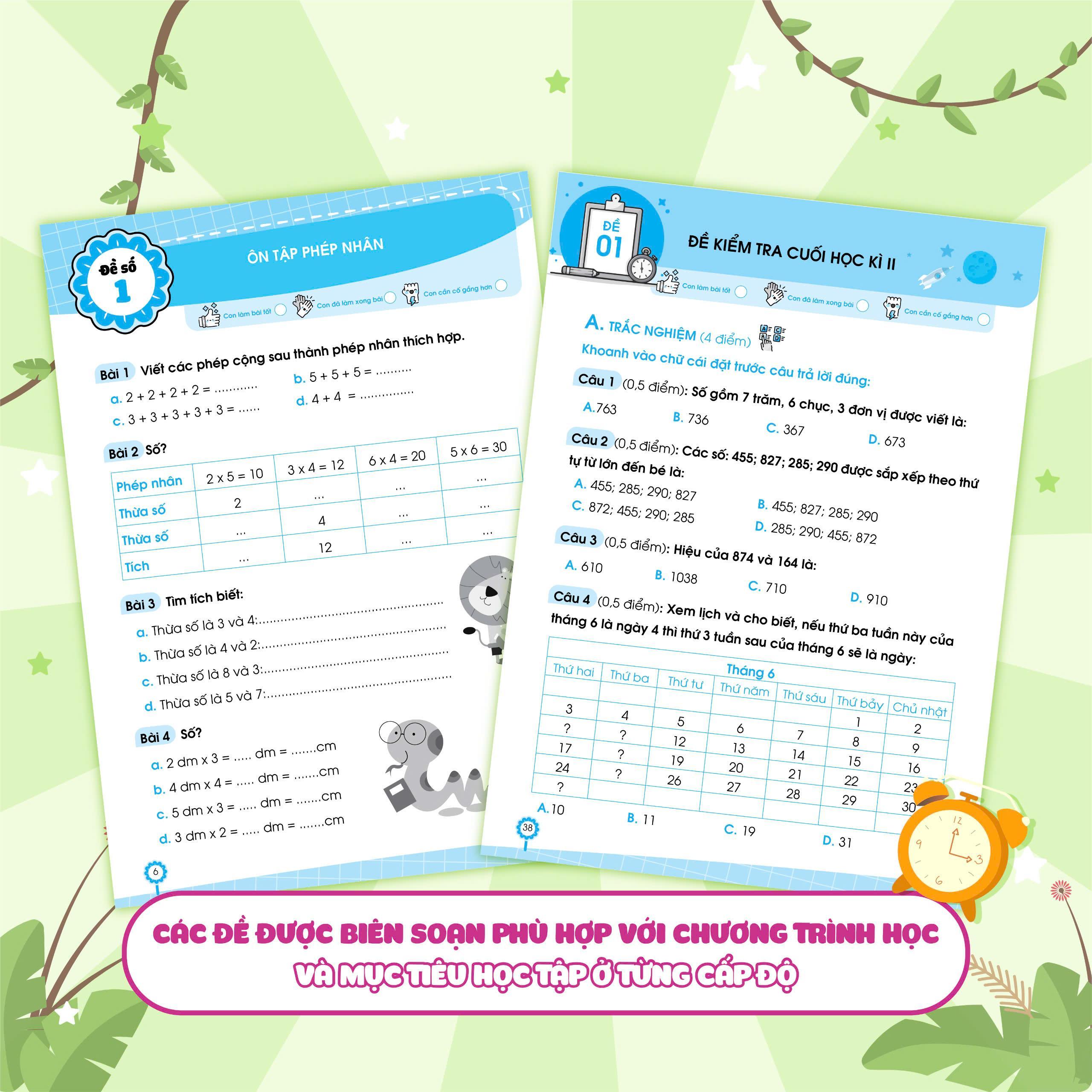 Mỗi cuốn sách cung cấp 5 đề kiểm tra cuối học kì để kiểm tra, đánh giá kiến thức tổng hợp của học sinh.