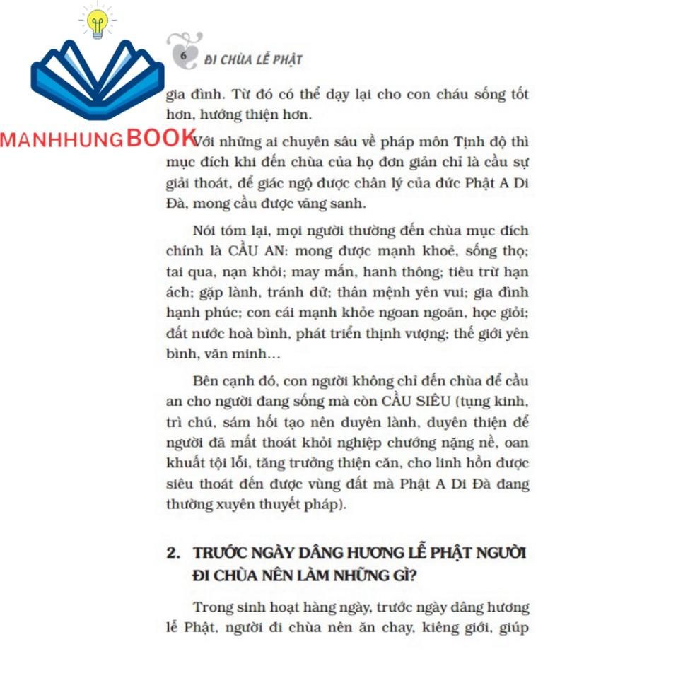 Đi chùa lễ phật, cuốn sách được biên soạn nhằm giúp bạn đọc tìm hiểu đạo Phật dân gian ở nước ta, biết cách bài trí các tượng thờ, ban thờ trong một ngôi chùa, các lễ tiết, nghi thức cúng lễ và cả văn khấn khi lên chùa lễ Phật