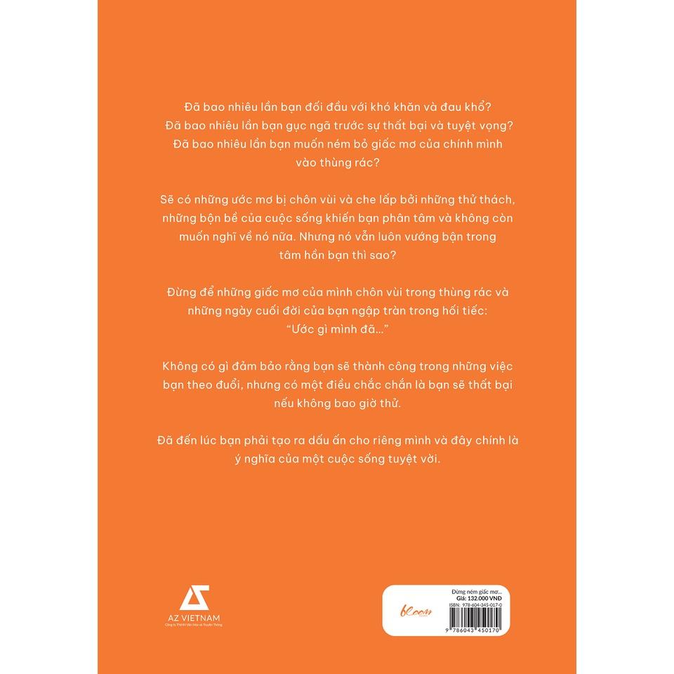 Đừng để những giấc mơ của mình chôn vùi trong thùng rác và những ngày cuối đời của bạn ngập tràn trong hối tiếc: “Ước gì mình đã…”. Không có gì đảm bảo rằng bạn sẽ thành công trong những việc bạn theo đuổi, nhưng có một điều chắc chắn là bạn sẽ thất bại nếu không bao giờ thử.