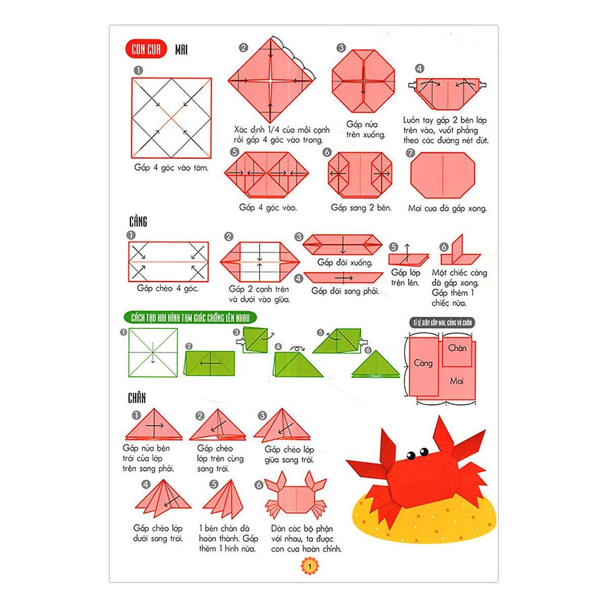 Với từng quyển, bé sẽ học cách gấp những đồ vật, con vật đơn giản nhất, từ phong bao, củ cà rốt… đến những hình phức tạp với nhiều đường gấp, cần nhiều sự tưởng tượng hơn như con cua, giỏ đựng hoa quả, lạc đà Mỗi trang sách là những hướng dẫn tỉ mỉ, bé chỉ cần làm lần lượt theo các bước. Cuối cùng, bé đã có một sản phẩm hoàn thiện với màu sắc sống động, ngộ nghĩnh.
