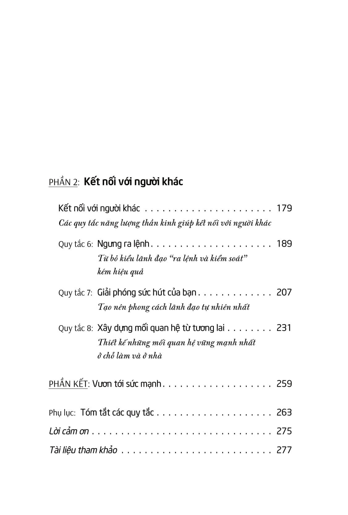 Cuốn sách bao gồm 8 quy tắc, được thiết kế như một giúp bạn khai thác tiềm năng của bộ não và tạo ra những thay đổi sâu sắc trong cuộc sống của chính m.ình lẫn những người xung quanh. Điều làm Năng lượng cảm xúc trở nên khác biệt chính là: những phương pháp “lạ lùng” và khác thường nhưng lại vô cùng hiệu quả, những câu hỏi xoáy sâu để ta tự khám phá tường tận những ngóc ngách của cảm xúc và cả những phân tích vừa khoa học vừa nhân văn khiến ta không ngừng gật gù cảm thán.
